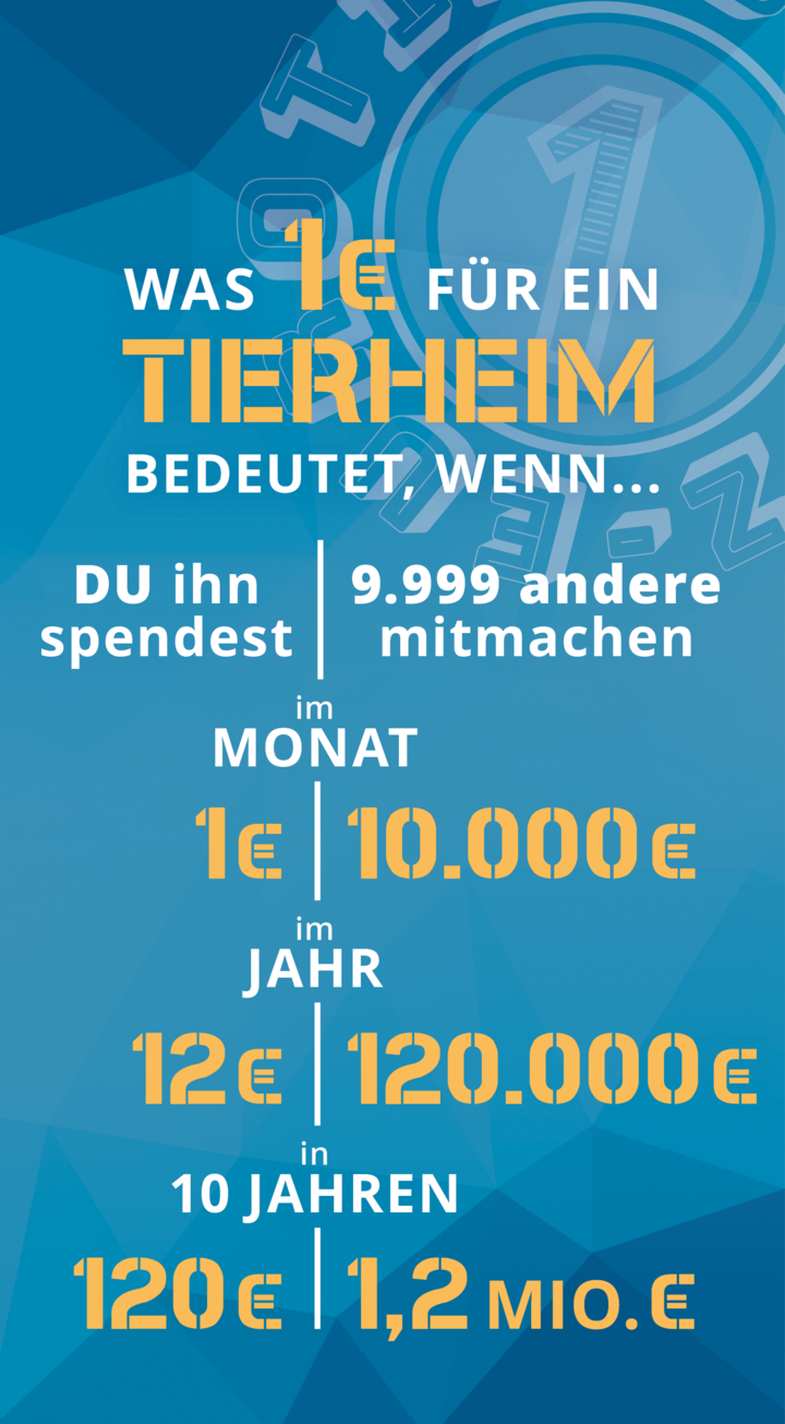 👉 Nur 1€ im Monat – weniger als ein Coffee-to-go – kann so vieles bewirken! Wenn jeder mitmacht, helfen wir gemeinsam unzähligen Tieren.