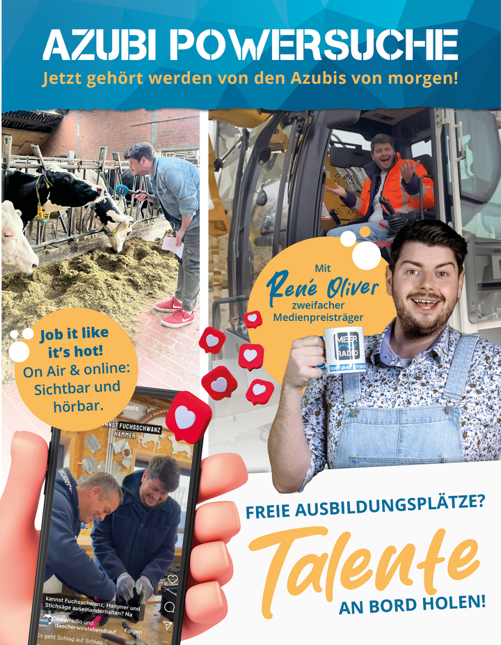 Ihr sucht auch Azubis oder Mitarbeiter für Euren Betrieb? Dann meldet Euch bei uns. Wir schicken René vorbei - damit er endlich was vernünftiges lernt. 😜
